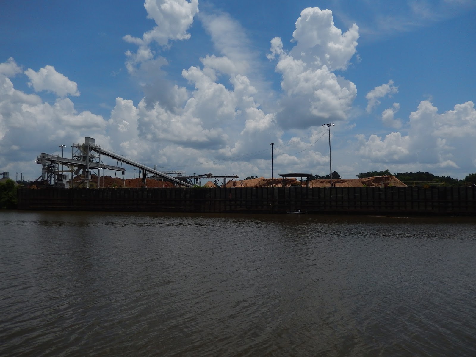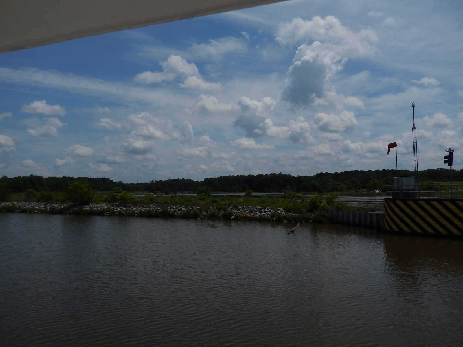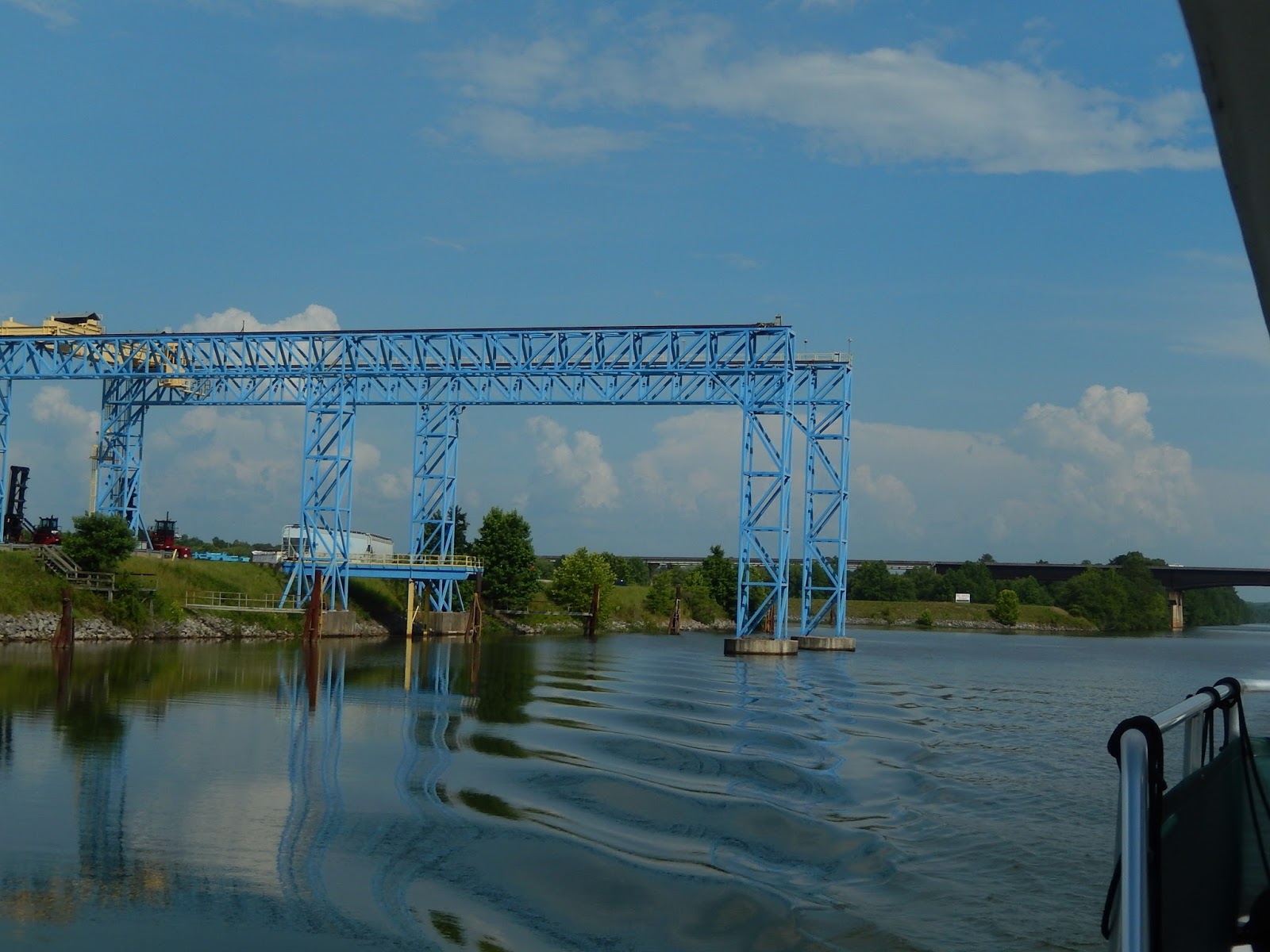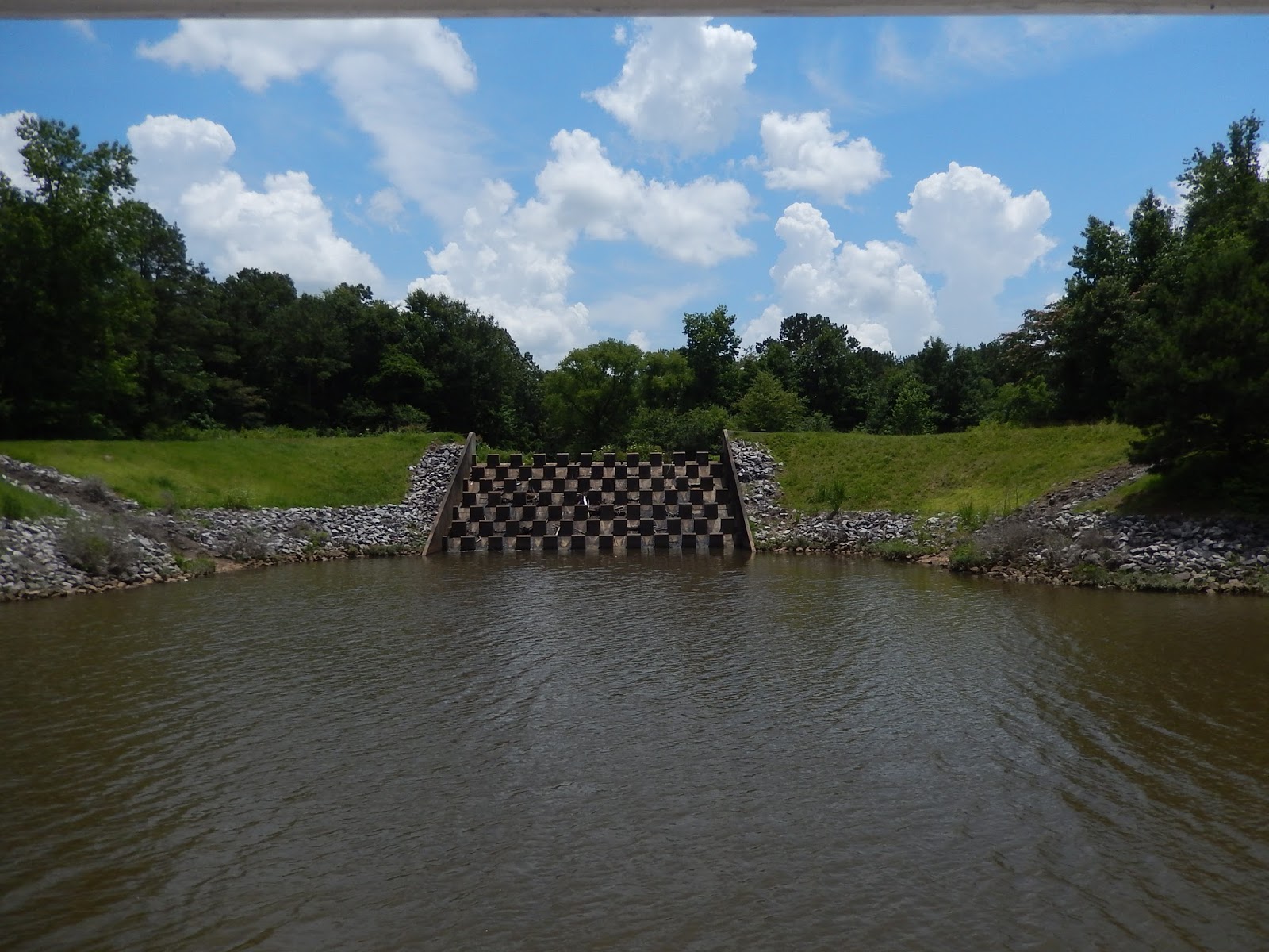 We are now in the man-made portion of the Tenn-Tom.This is where watershed runnoff enters the river and this erosion control device is designed to slow down the water as it comes streaming into the man-made canal.