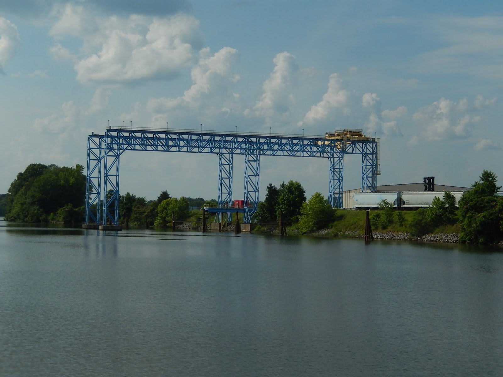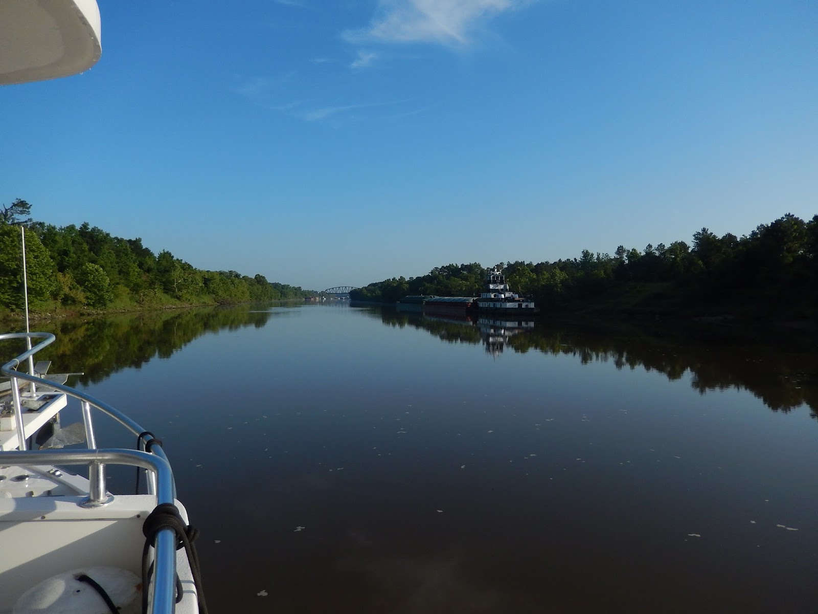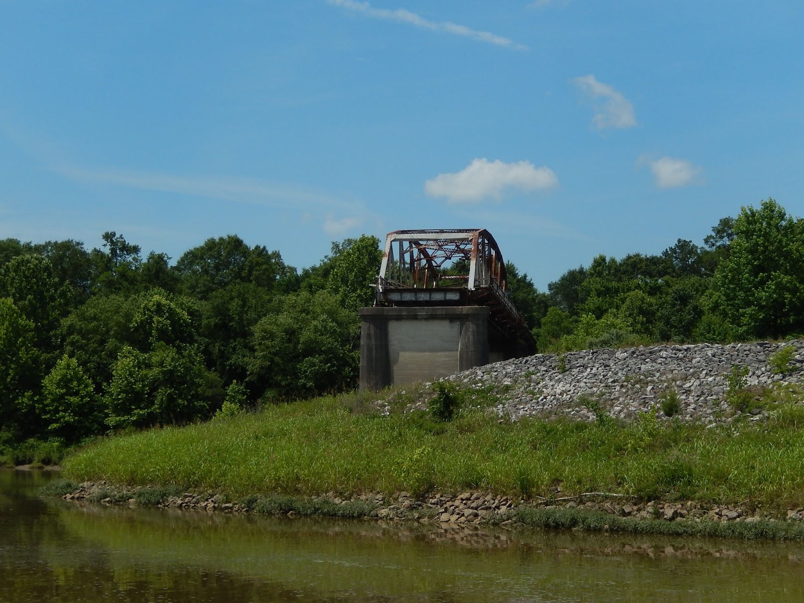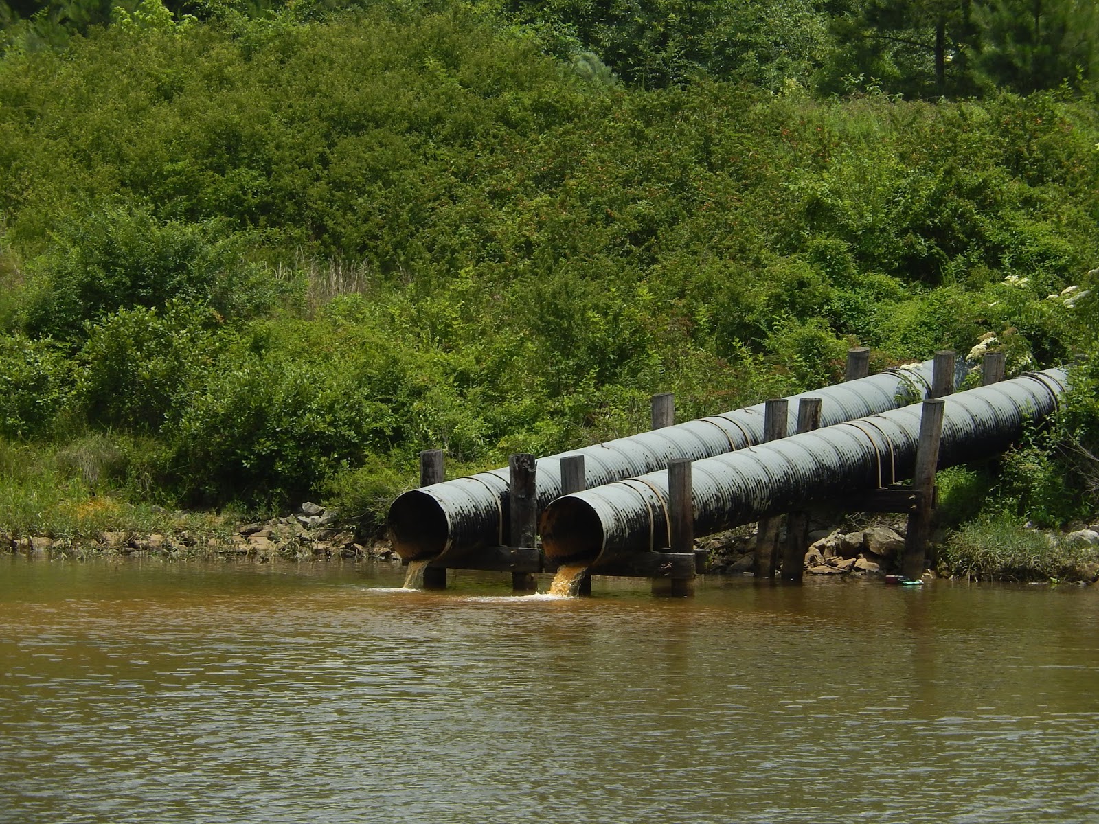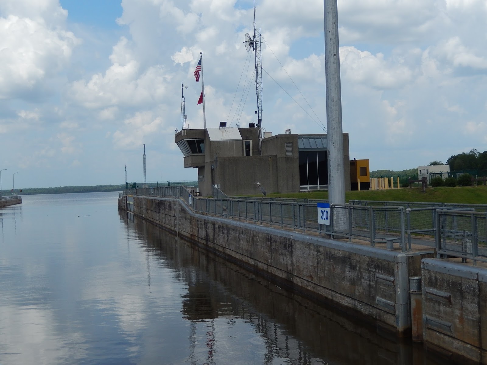 We are now in the man-made portion of the Tenn-Tom.This is where watershed runnoff enters the river and this erosion control device is designed to slow down the water as it comes streaming into the man-made canal.