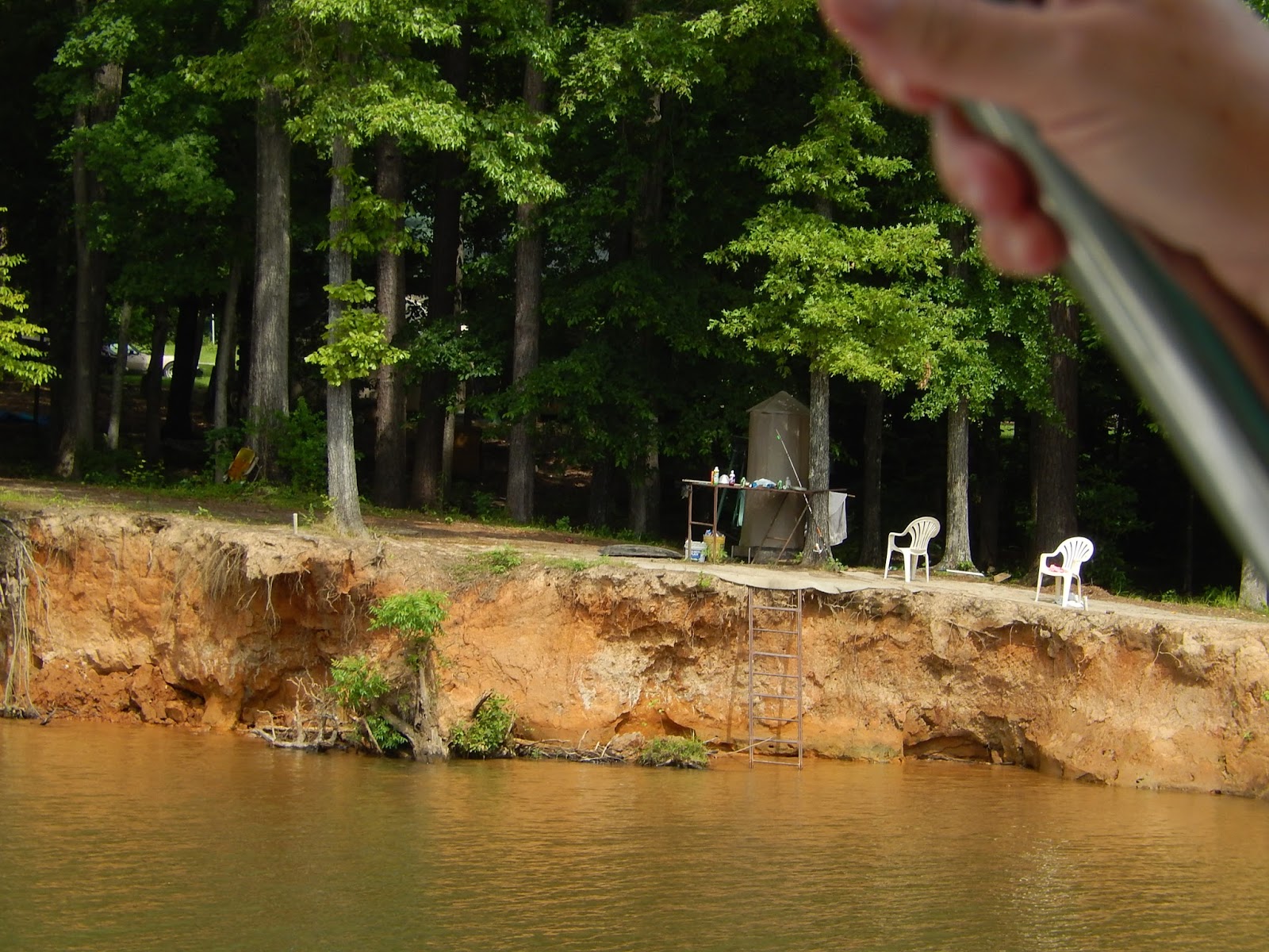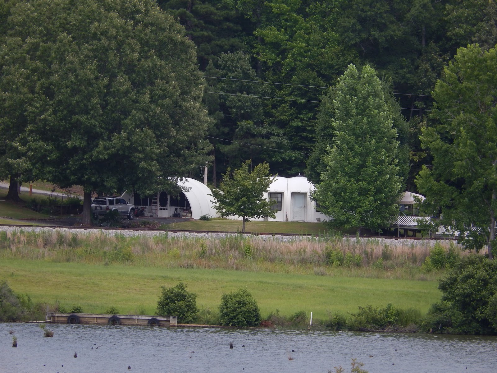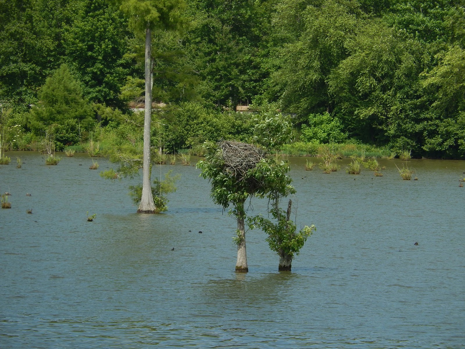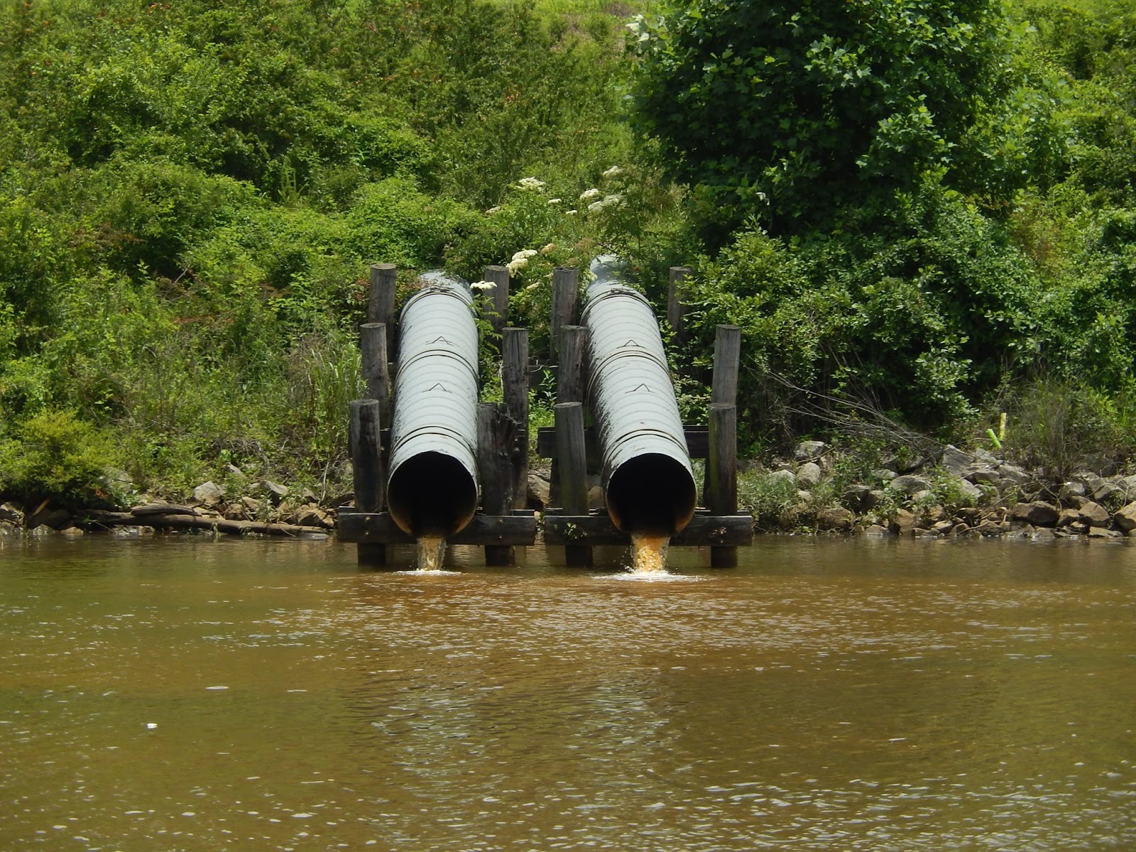 We are now in the man-made portion of the Tenn-Tom.This is where watershed runnoff enters the river and this erosion control device is designed to slow down the water as it comes streaming into the man-made canal.