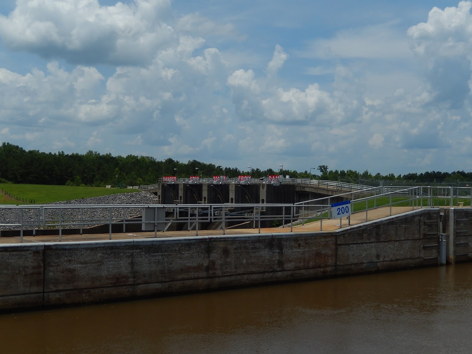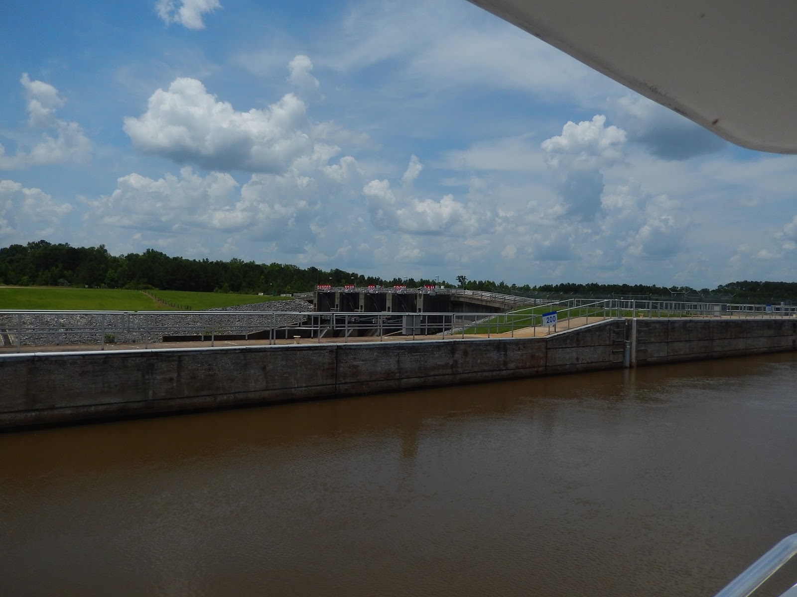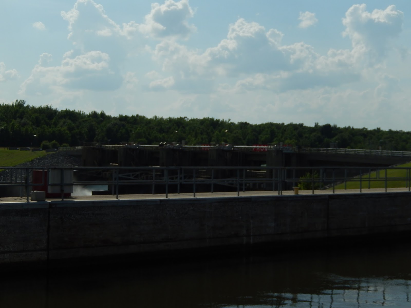 Once up to the top of the lock, we get a great view of the working part of the dam. Still no hydro-electric being used.