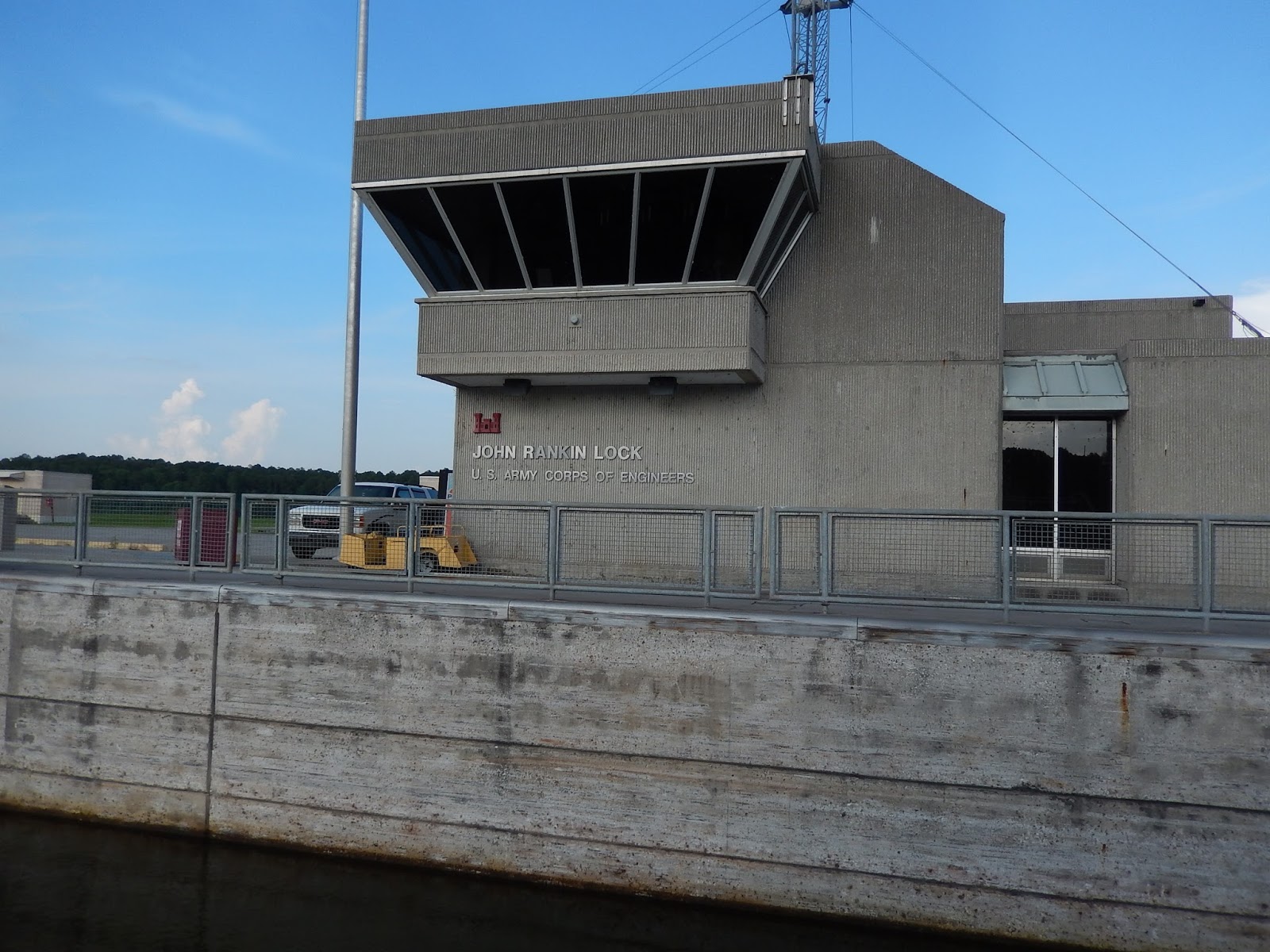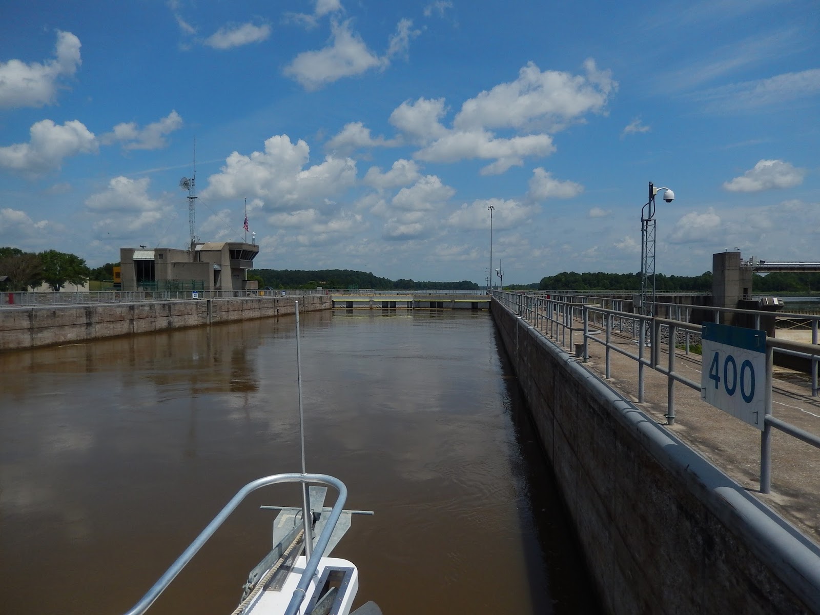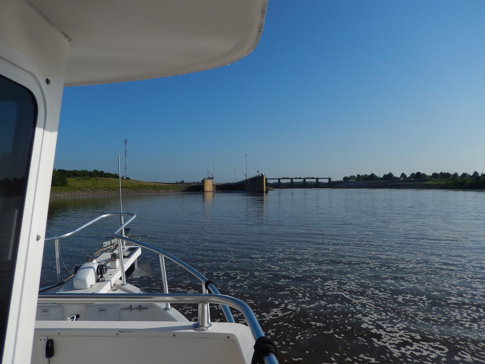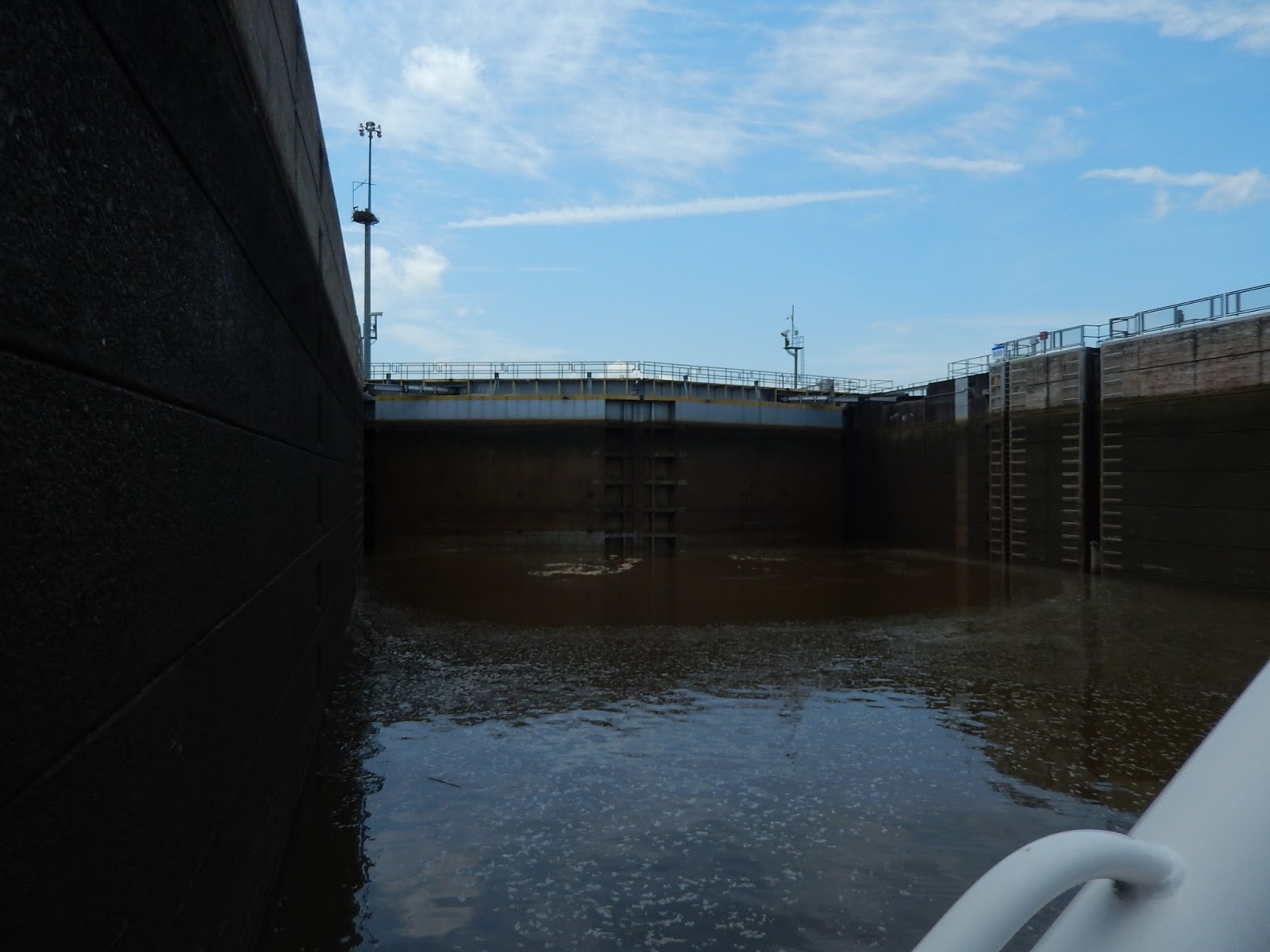 Once up to the top of the lock, we get a great view of the working part of the dam. Still no hydro-electric being used.