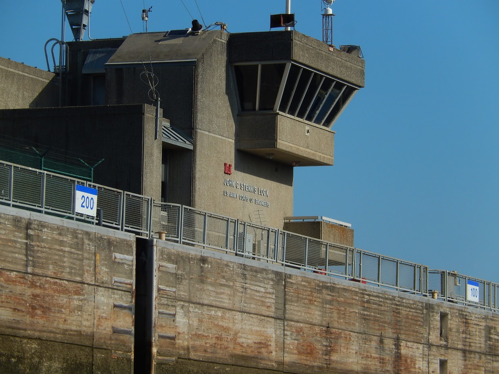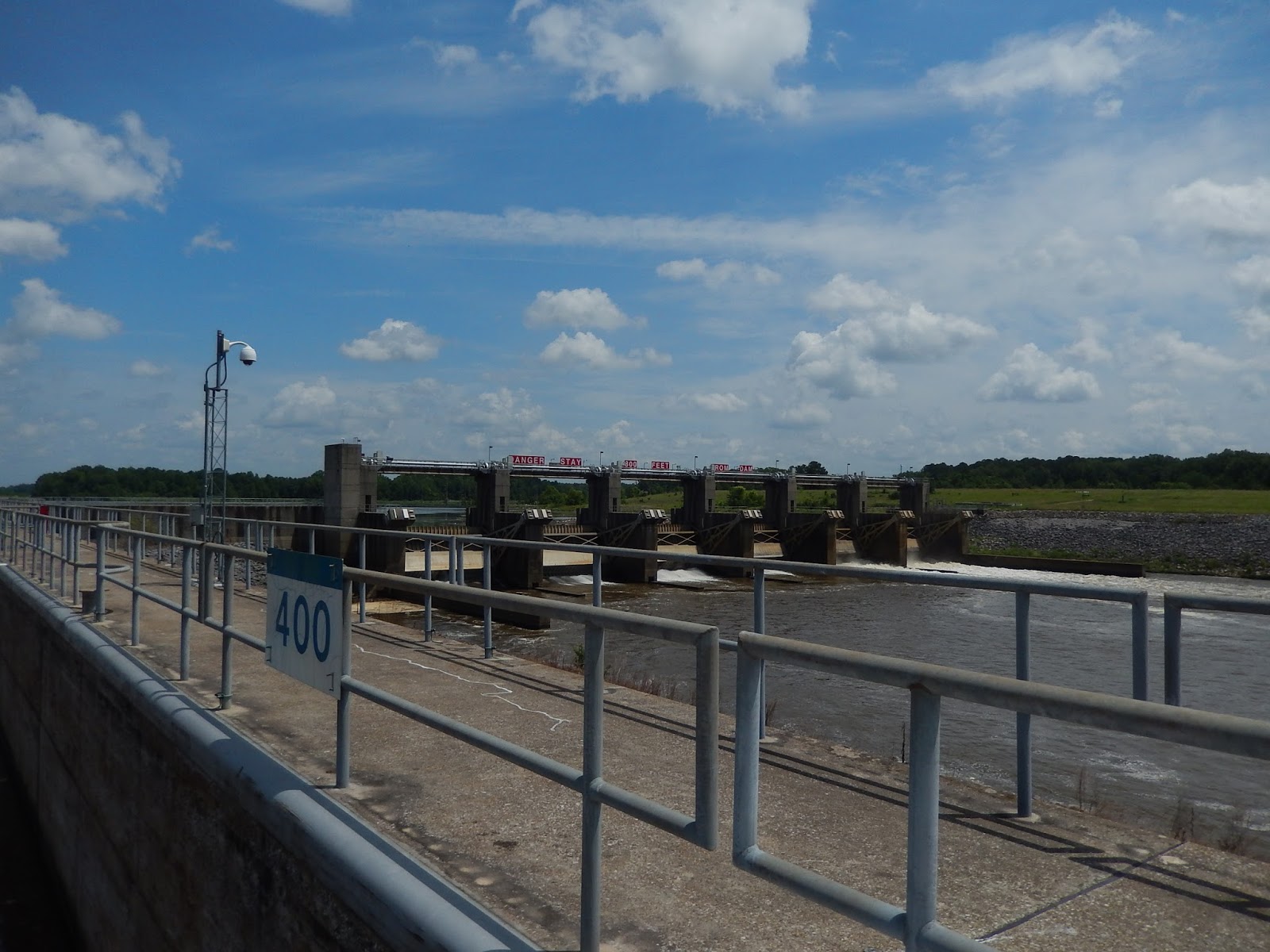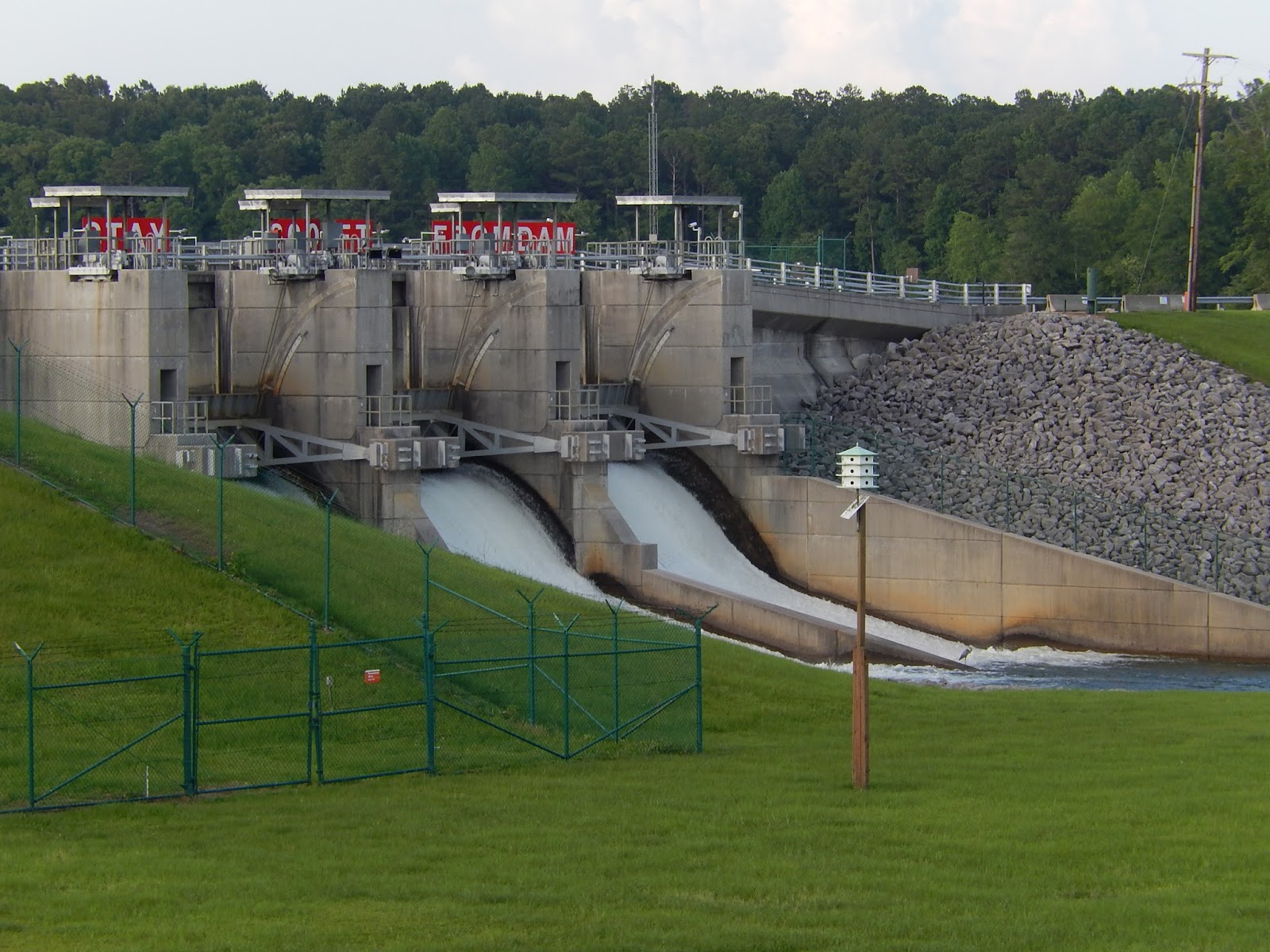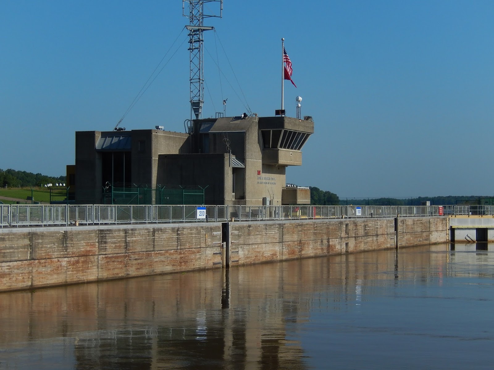 This is a good view of the gates of the dam that regulate the level of the upstream pool of water.