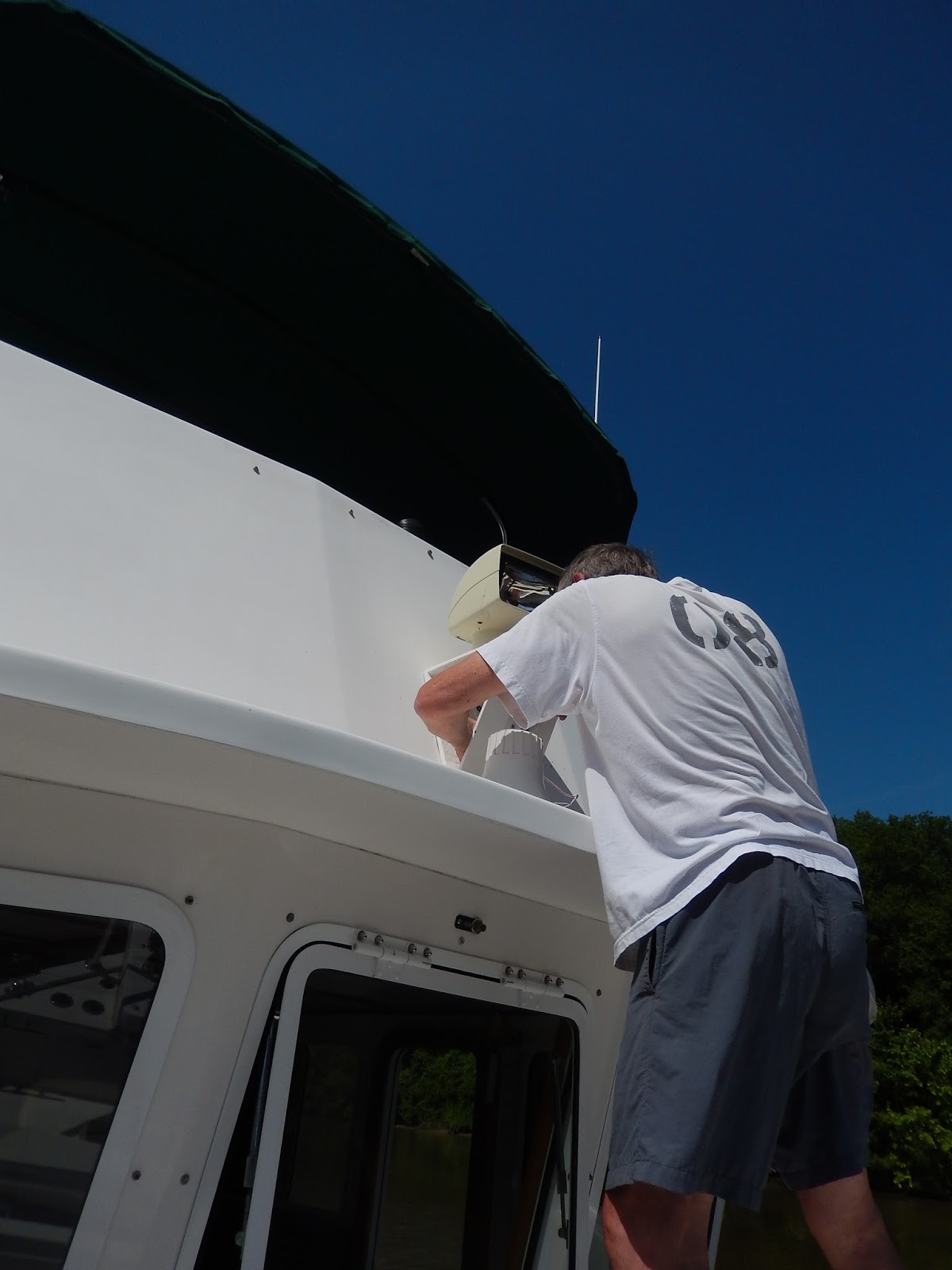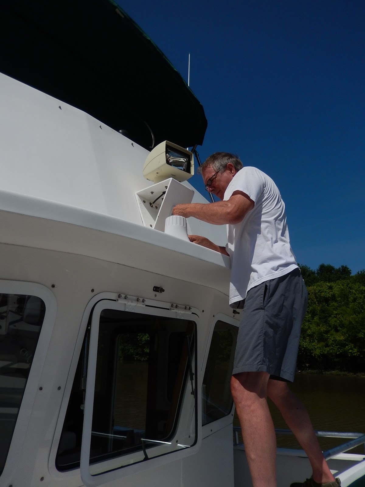 One of the things they say about a boat is that everything is broke.....just not yet!. Here I'm installing a new Hailer for the front deck.