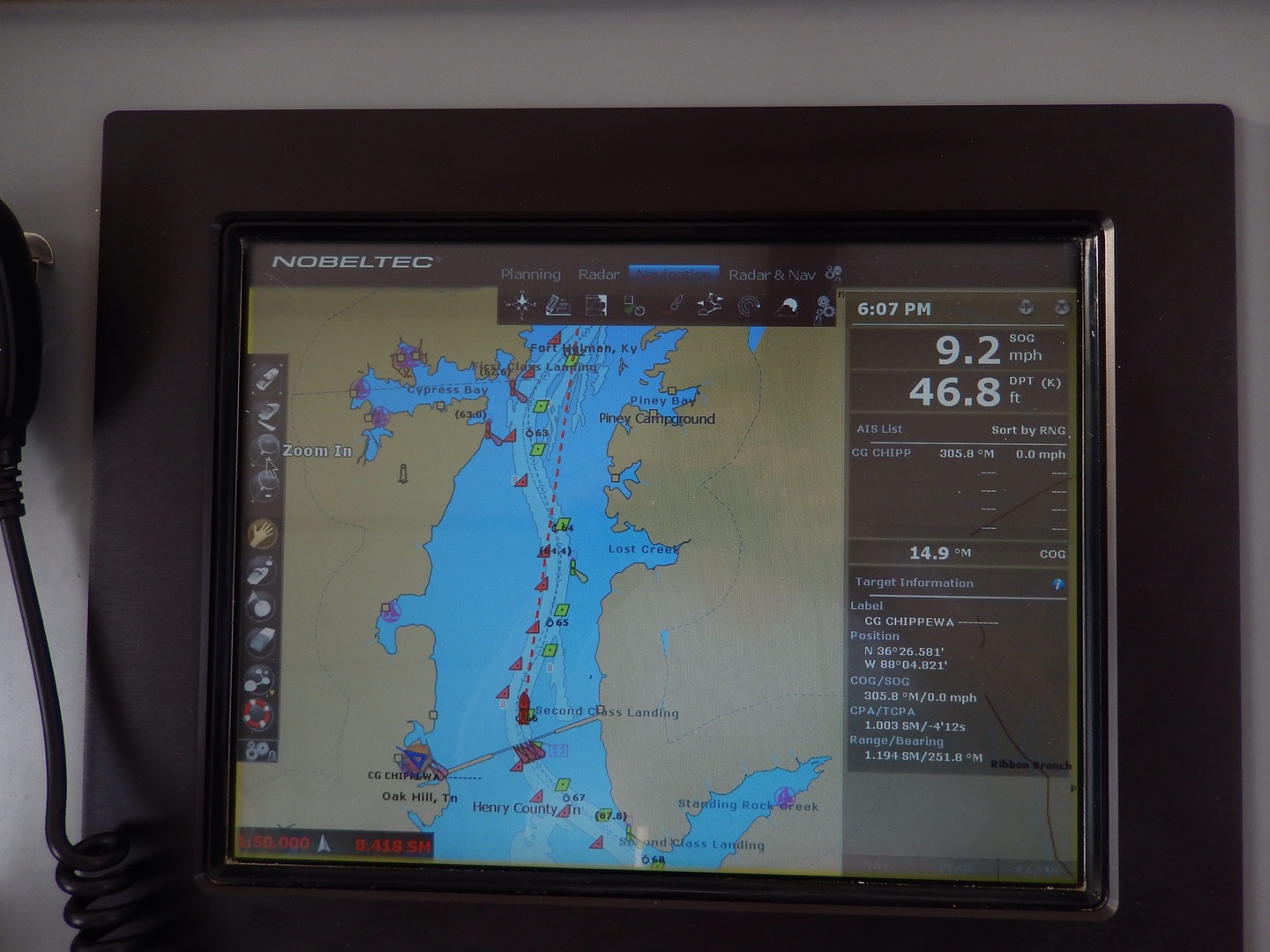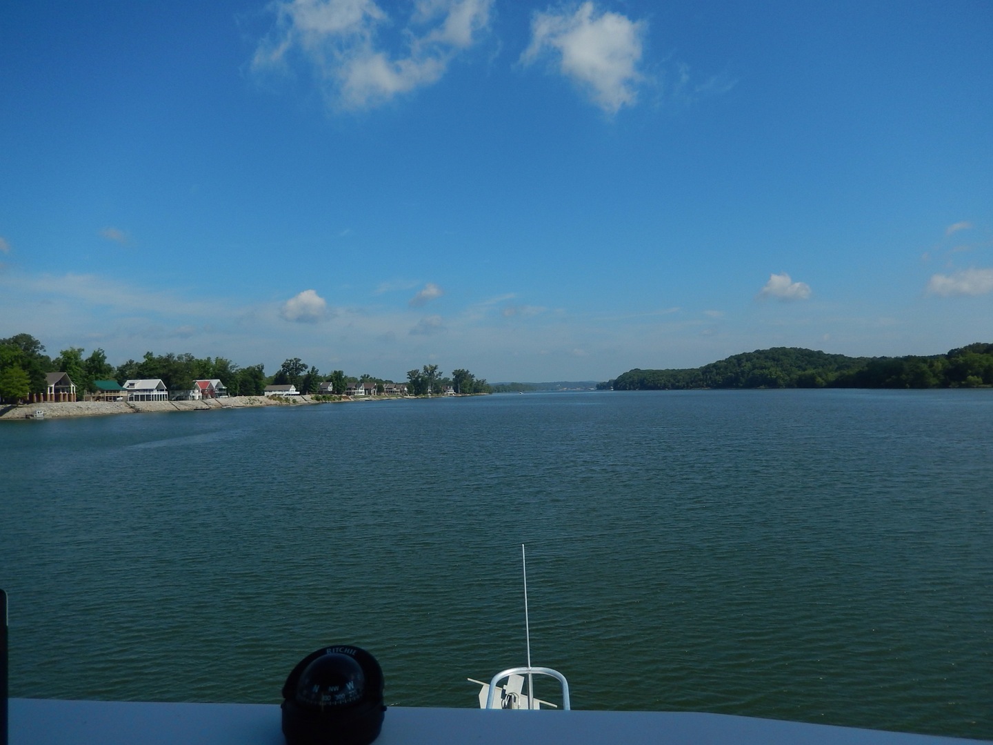We are continuing to head downstream on the Tennessee river. The water is still super smooth and the weather is hot.