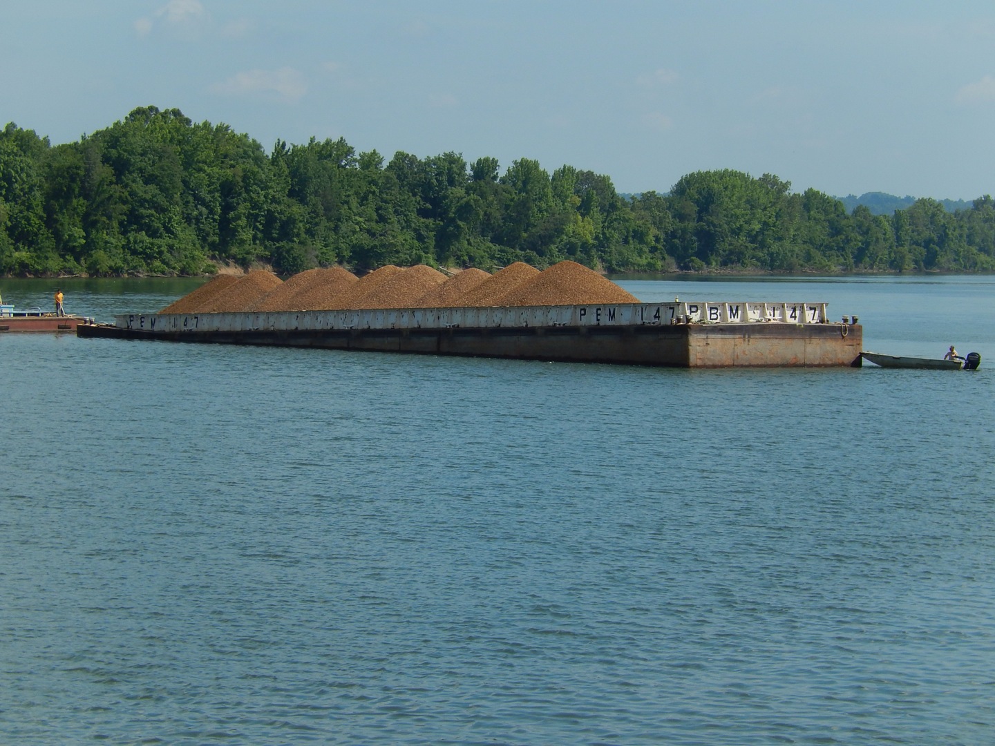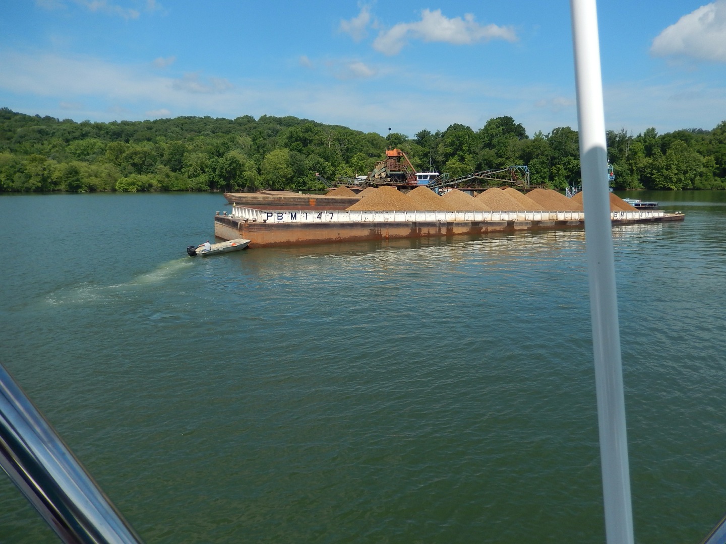 We couldn't believe this barge was under the command of a john boat but the captain looked like this was not the first time pushing a barge.